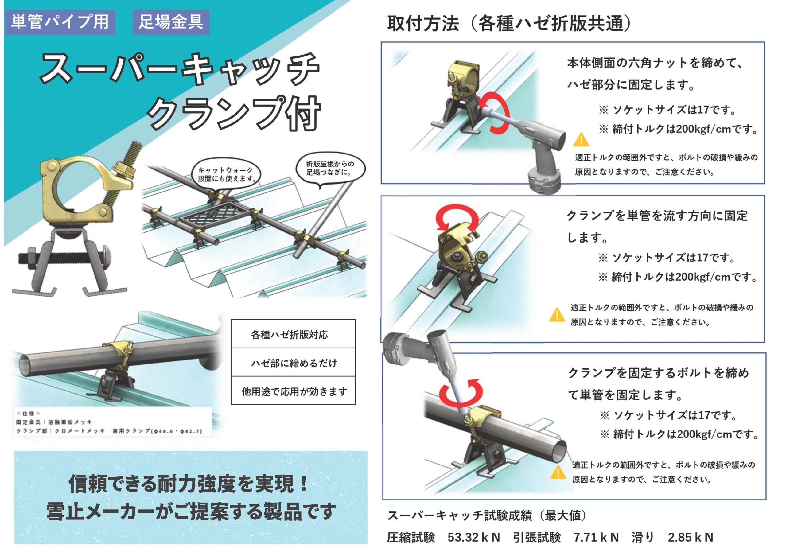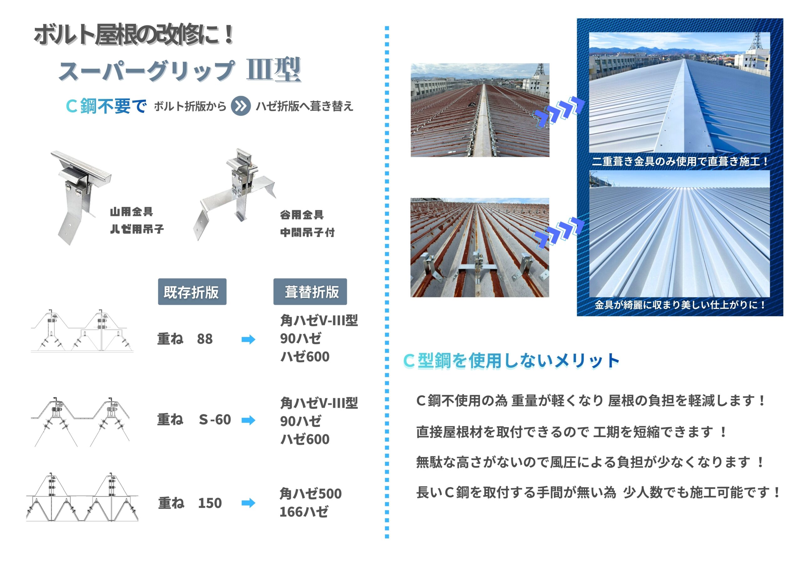 すべて 雪止金具 樋受金具 折版屋根金具 二重葦屋根取付金具 ソーラーパネル取付金具 折版屋根金具 特注事例:スーパーキャッチクランプ付 二重葦屋根取付金具 特注事例:スーパーグリップⅢ型 重ね88→ハゼ600へ葺き替え 二重葦屋根取付金具 特注事例:スーパールーフ66 改修金具
